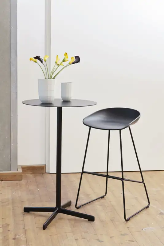 De HAY About A Stool AAS 38 is een minimalistische barkruk van Hee Welling met een comfortabele kuip die strak oogt maar toch zacht meegeeft. De zitschaal is gemaakt uit gerecycled polypropyleen en staat op een slank stalen sledeframe dat verkrijgbaar is in roestvrij staal of in zwart of wit gepoedercoat staal. Je kan kiezen uit twee zithoogtes, waardoor hij zowel aan een kookeiland als aan een hogere bartafel goed werkt. Qua uitstraling is er veel variatie mogelijk via kleuren van de kuip en opties zoals frontbekleding of een losse seat pad voor extra comfort. Daardoor is de AAS 38 een veelzijdige kruk die in hospitality en kantoor net zo logisch aanvoelt als thuis.