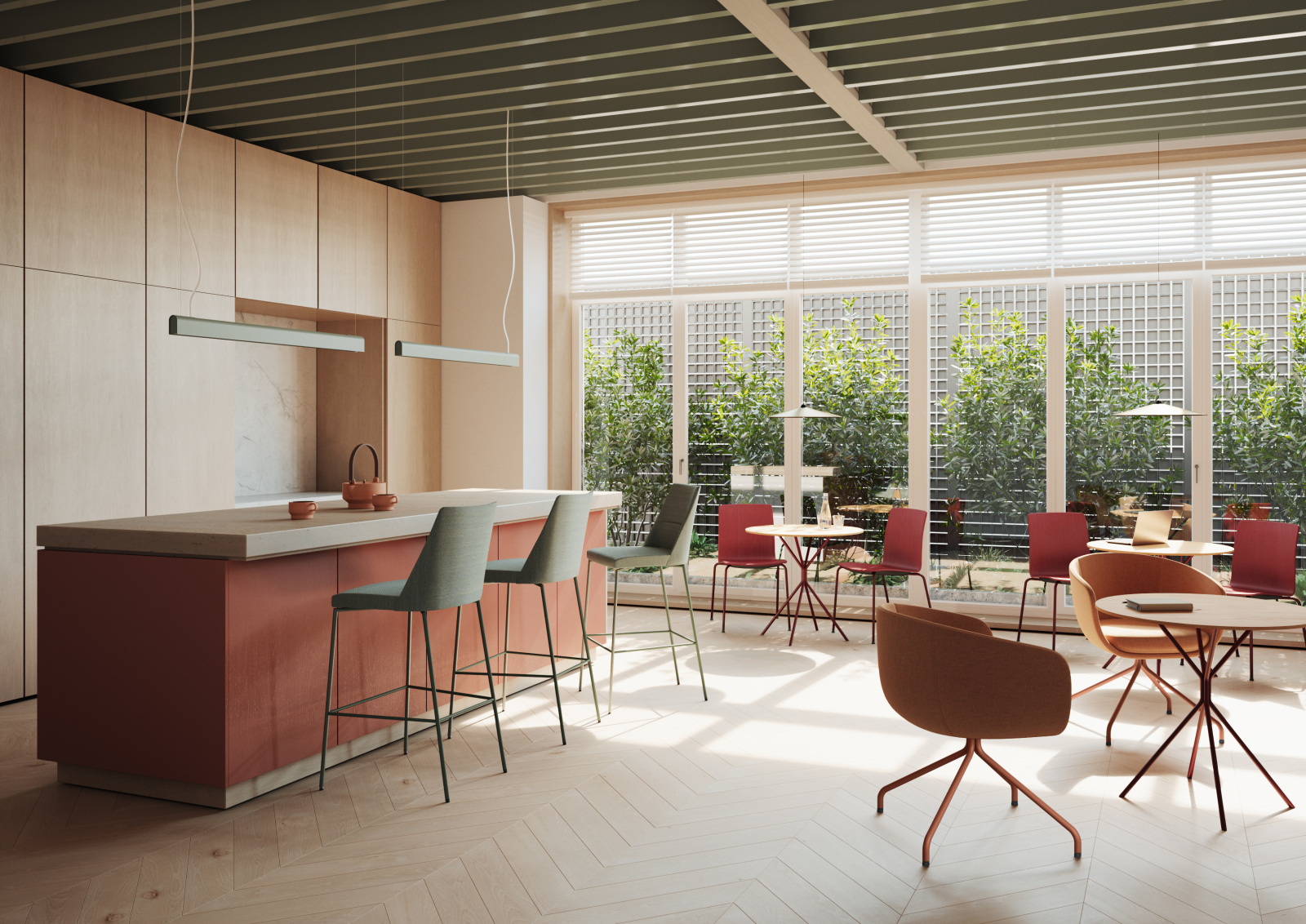 De Profim Chic is een elegante, compacte zitmeubelcollectie van Christophe Pillet, herkenbaar aan het slanke frame en de verfijnde belijning. De reeks omvat onder meer stoelen, fauteuils en barkrukken, waardoor je één consistente look kan doortrekken van hospitality tot kantoor. Afhankelijk van het model is er keuze uit verschillende onderstellen (zoals 4-poot, houten poten of een draaibasis), met opties zoals een automatische terugkeerfunctie zodat de stoel netjes in positie terugkomt. Qua afwerking kan je doorgaans variëren in stoffering, framekleuren en glijders (bijvoorbeeld voor zachte of harde vloeren), zodat het zowel esthetisch als praktisch klopt. Door de lichte uitstraling én het comfort is Chic geschikt voor café- en restaurantzones, hotel- en lobbyruimtes, wachtruimtes en informele overlegplekken.