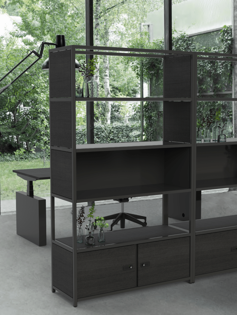 De Robberechts Stan is een open rek /kastenconcept met een slank, architecturaal buizenframe dat geschikt is voor zowel opbergen als presenteren. De structuur is opgebouwd uit 25×25 mm buizen met een vaste tussenafstand van 35 cm, die je kan invullen met legborden in hout of metaal, over volle of halve lengte. Je kan het systeem uitbreiden met accessoires zoals vakverdelingen en schuifdeuren, zodat je open en gesloten opbergruimte kan combineren. Qua maatvoering is de Stan verkrijgbaar in vier hoogtes (81/118/156/194 cm) met een vaste breedte van 111 cm en diepte van 42 cm. Dankzij verschillende kleur- en afwerkingskeuzes stem je de Stan eenvoudig af op de inrichting en de gewenste uitstraling.