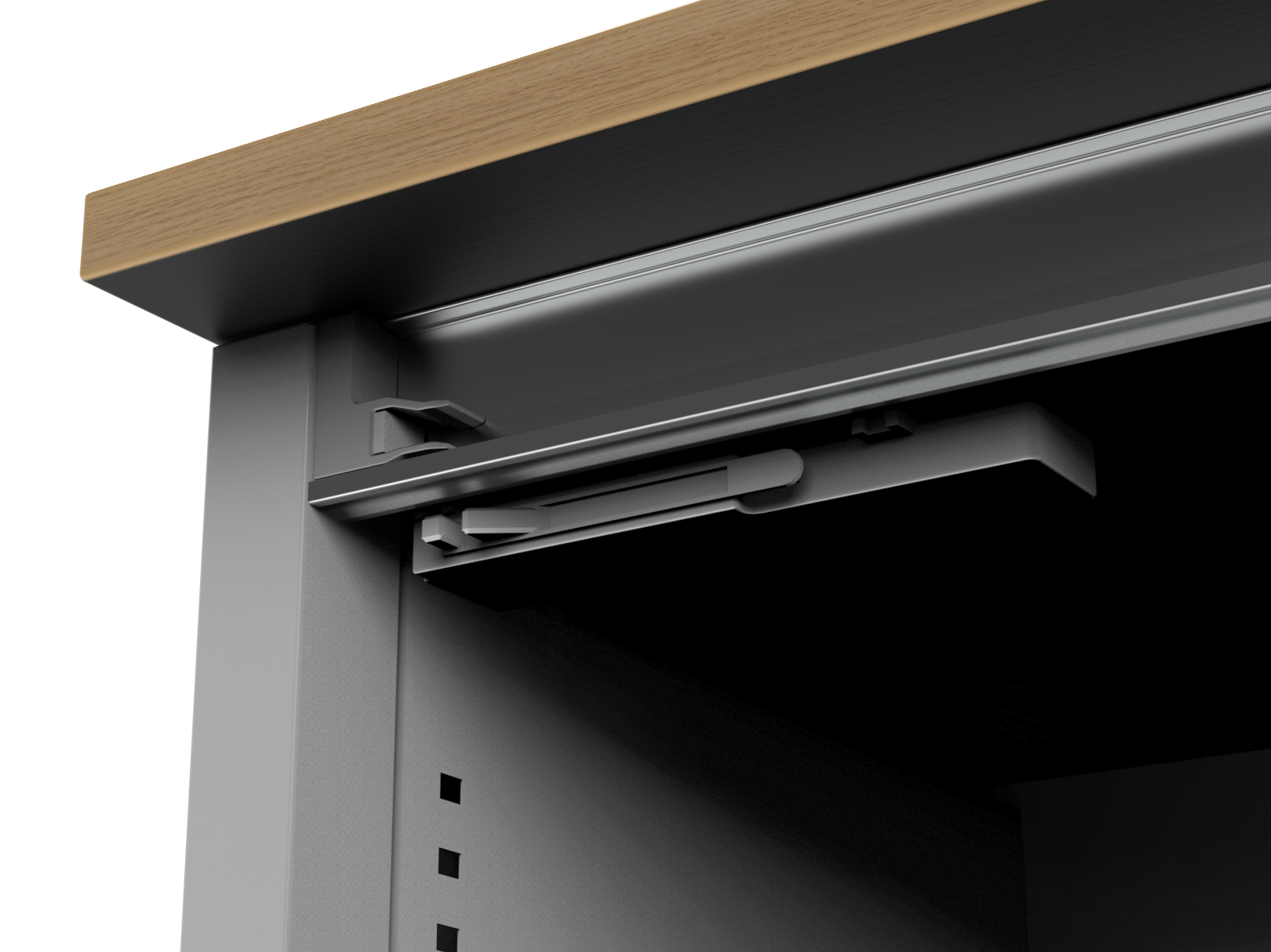 De Robberechts Twinn (in de praktijk vaak “Twin” genoemd) is een modulaire archiefkast met schuifdeuren, ontworpen om ruimtebesparend te werken in kantooromgevingen. Je configureert hem in modules met 2 of 3 rompen, als eenzijdige opstelling of als gespiegelde variant zodat de kast desgewenst van twee zijden toegankelijk is. Het maatgamma is ruim, met vier hoogtes (87/123/159/195 cm), breedtes van 160–240 cm (2-romps) of 240–360 cm (3-romps) en een diepte van circa 50,5 cm. Voor afsluiting zijn er opties zoals cilinderslot of cijferslot, en je kan kiezen voor volle metalen deuren of geperforeerde deuren met akoestisch dempende mousse en verschillende perforatiepatronen. Afwerking en opties omvatten onder meer een topblad in metaal of melamine en zelfs een metalen plantenbak, waardoor de Twinn ook als roomdivider of accentmeubel kan functioneren.