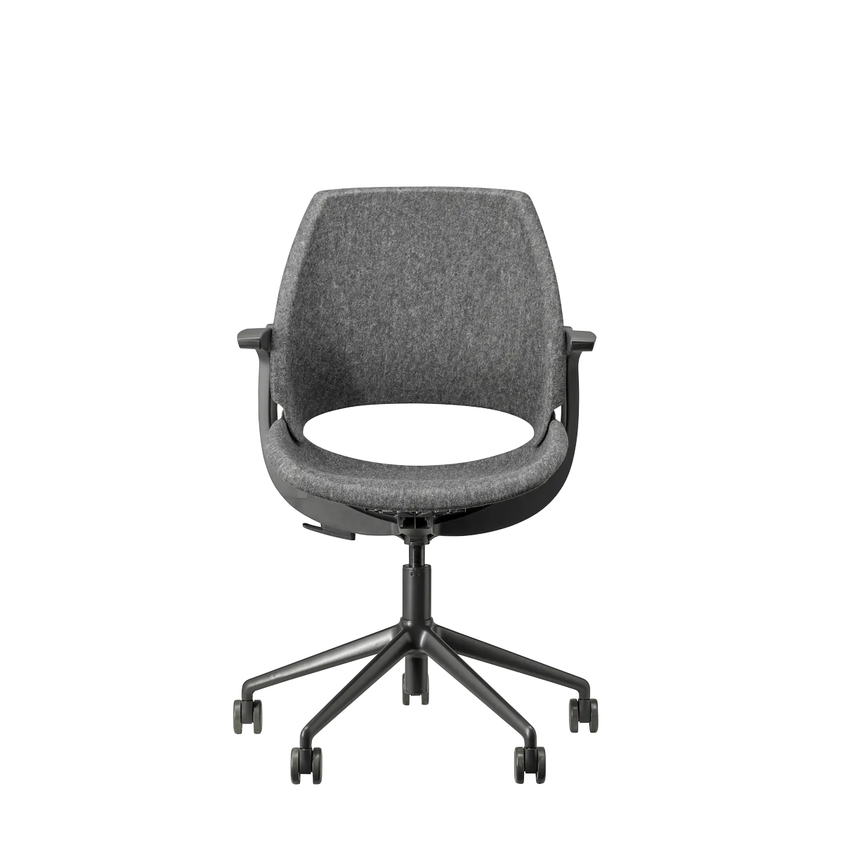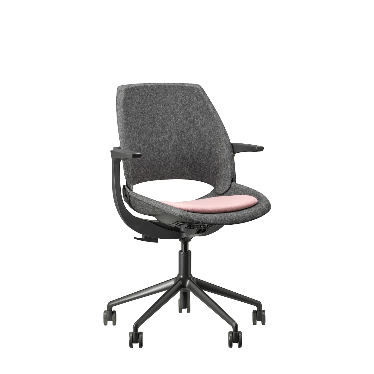 De Vepa Be Hybrid is een circulaire werkstoel die direct prettig zit en in elke zithouding ondersteuning geeft dankzij een gepatenteerd, automatisch meebewegend mechaniek. Je bedient hem eenvoudig, waarbij je vooral de zithoogte instelt en daarna meteen comfortabel kan doorwerken, ook in omgevingen met wisselende gebruikers zoals kantoor, onderwijs of thuis. Zitting en rug zijn gemaakt van gerecycled PET vilt en de stoel bestaat voor een groot deel uit gerecyclede materialen, met een lage CO2 voetafdruk als extra pluspunt. Afhankelijk van de uitvoering kan je kiezen uit verschillende kleuren en onderstelafwerkingen en is er een optioneel zitkussen voor extra comfort. Daarmee is de Be Hybrid een praktische, duurzame keuze voor hybride werkplekken waar eenvoud, ergonomie en uitstraling tegelijk moeten kloppen.