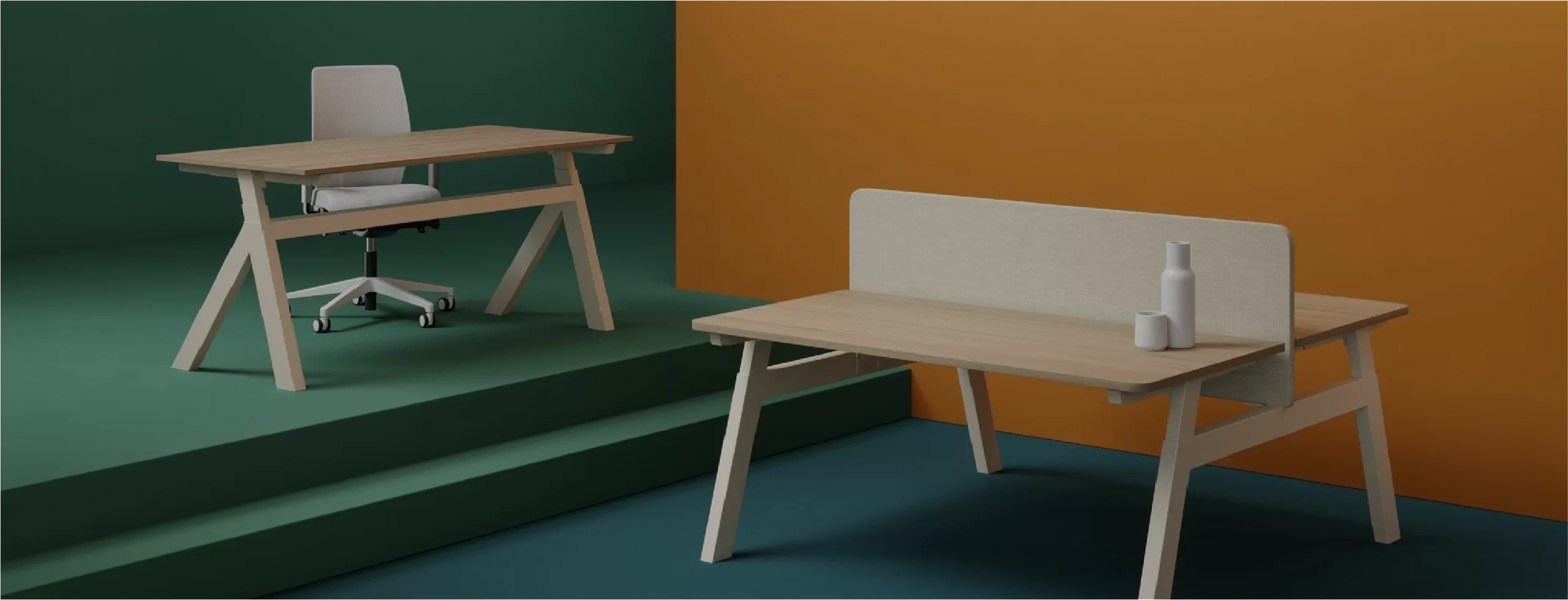 De Vepa Piqniq heeft een herkenbaar, speels ontwerp met schuine poten die een moderne werkplek een lichte en open uitstraling geven. Het blad beweegt recht omhoog en omlaag, waardoor je ondanks het karakteristieke onderstel toch comfortabel en ergonomisch kunt wisselen tussen zitten en staan. Dankzij de ruime opzet en solide constructie functioneert Piqniq zowel als individueel bureau als in duo-opstellingen binnen eigentijdse kantooromgevingen.