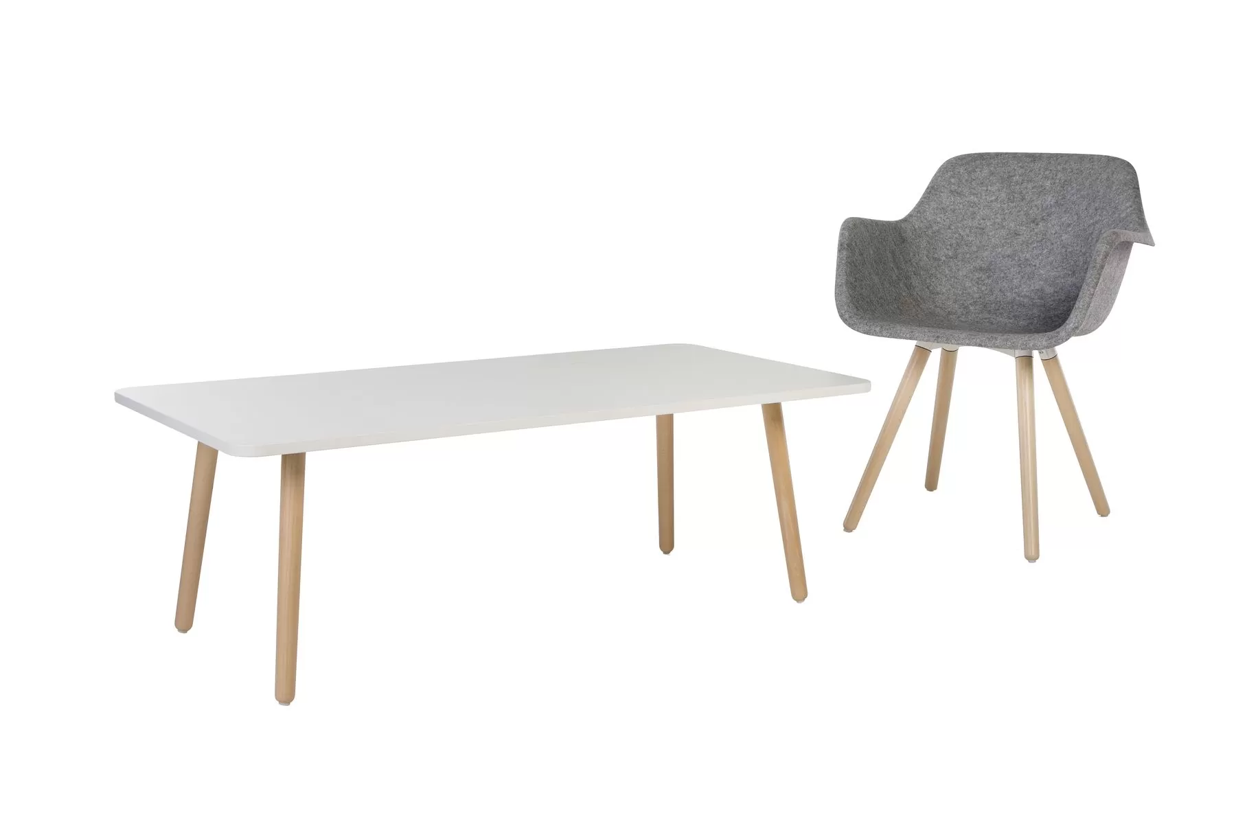 De Vepa Skeef is een tafelserie met karakteristieke scheef geplaatste poten die direct een stevige, herkenbare basis geven in vergader, overleg en projectruimtes. Het blad is leverbaar in 18 mm of 25 mm dikte en bij de rechthoekige uitvoering zorgen subtiel afgeronde hoeken voor een zachtere, verzorgde uitstraling. Je kan kiezen uit meerdere bladvormen zoals rechthoekig, rond, vierkant en driehoek, waardoor je de tafel eenvoudig afstemt op de ruimte en de manier van werken. Onder het blad zit een terugliggend metalen frame en het onderstel is uitgevoerd met massief beuken poten met vloerdoppen voor stabiel dagelijks gebruik. Binnen dezelfde familie zijn er ook lage varianten als bijzettafel, zodat je één consistente look kan doortrekken doorheen verschillende zones.