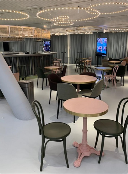 KVS heeft de losse inventaris geleverd van speciaal mebiliar tot vintage meubiliar. Laatstgenoemde is ingekocht ,aangepast (zaken toegevoegd, gestoffeerd etc.) en geplaatst binnen het Forum.