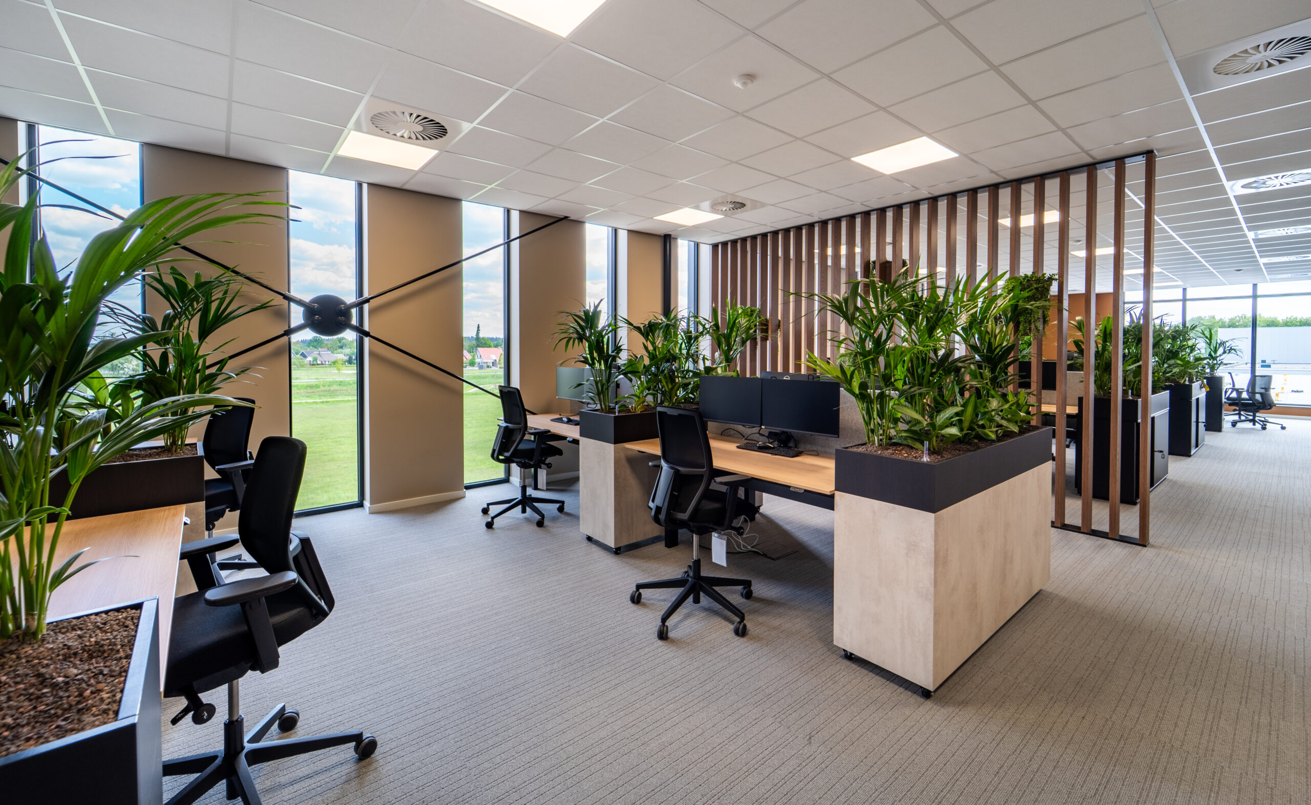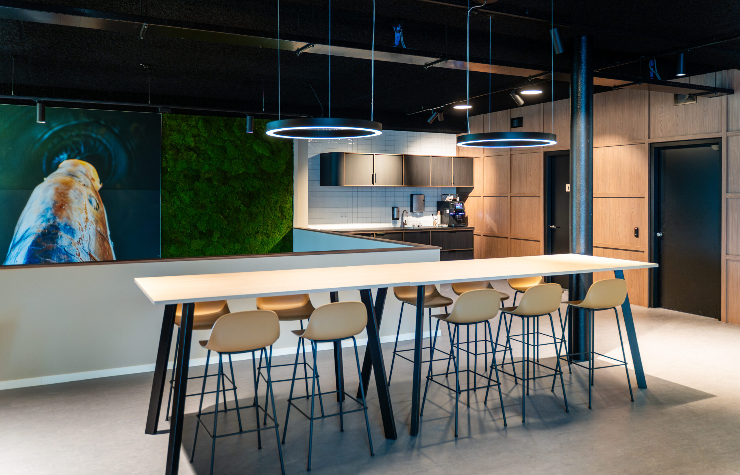 In samenwerking met Van Aagten Projectinstallatie hebben wij het volledige traject verzorgd. Dat omvatte het ontwerpen en inrichten van de kantoren, het ontwikkelen van visuals die de merkbeleving versterken, en het toepassen van speciaalwerk in vloeren en verlichting. Door nauw samen te werken en oog te hebben voor detail, konden we alle onderdelen naadloos op elkaar laten aansluiten.