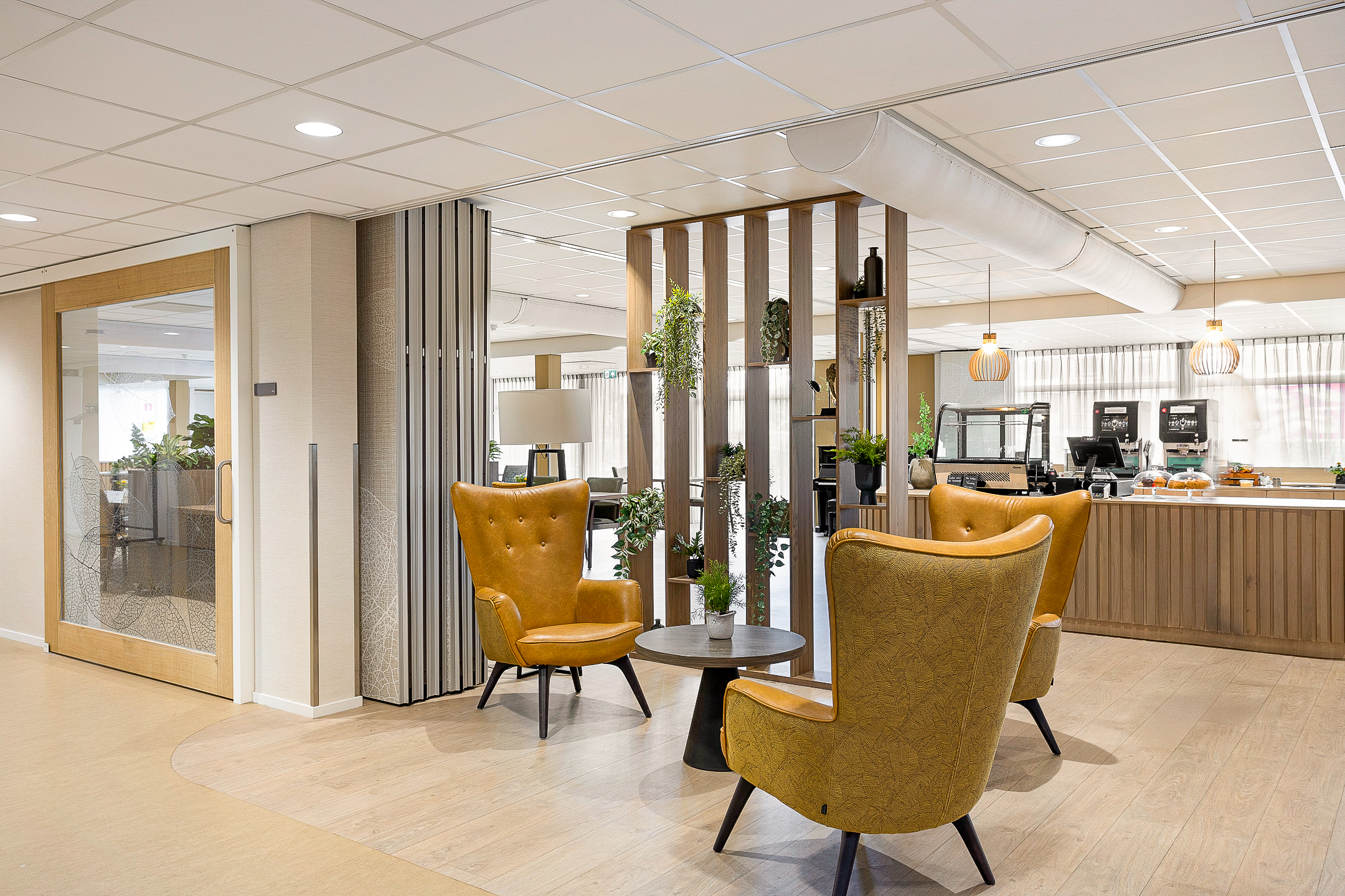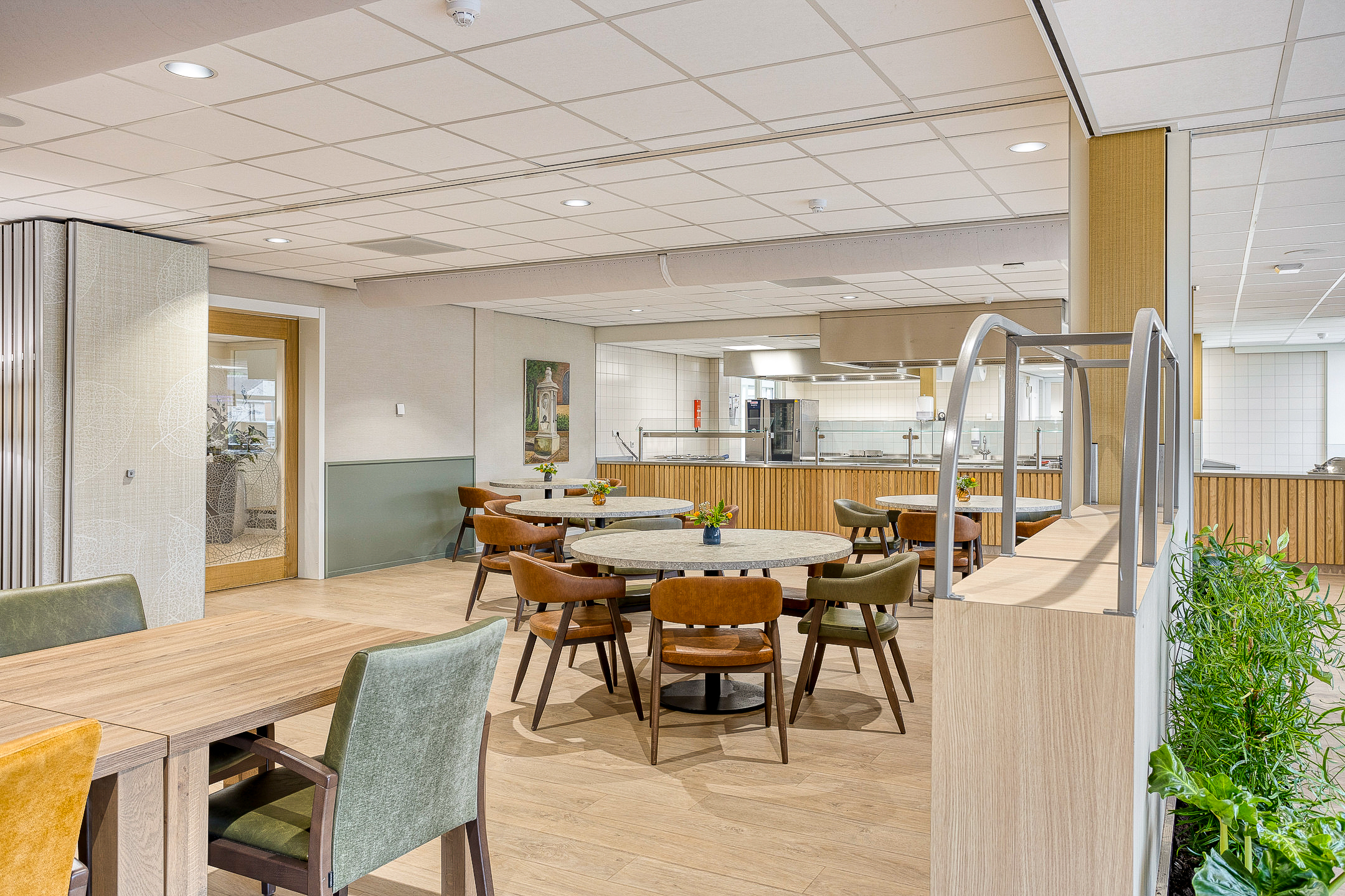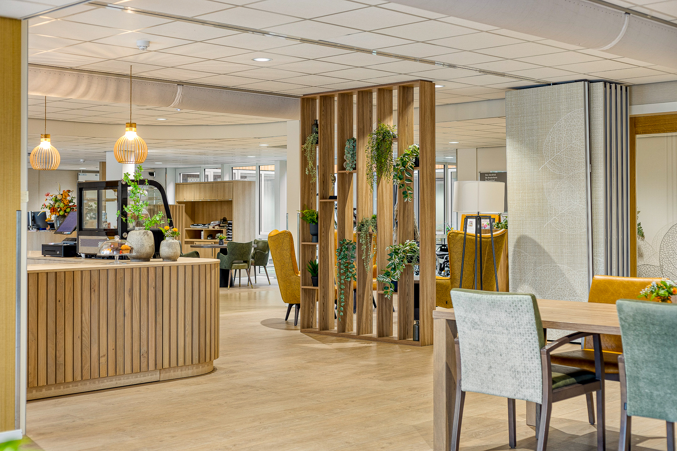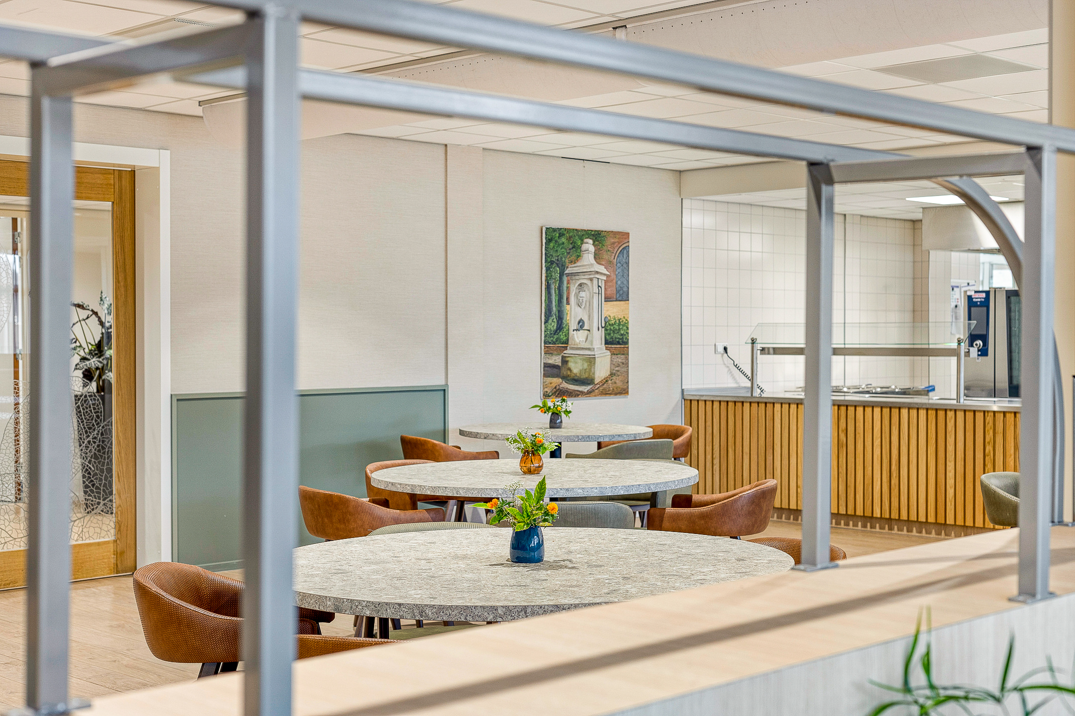 Wij hebben het complete meubilair geleverd voor de verschillende ruimtes in het gebouw, van de gezamenlijke woonkamers en het restaurant tot de ontmoetingsplekken en kantoorruimtes. Daarnaast hebben we maatwerk gerealiseerd, waaronder de bar in het restaurant. Dit maatwerk is speciaal ontworpen om zowel praktisch als uitnodigend te zijn, en vormt een centraal ontmoetingspunt voor bewoners, bezoekers en medewerkers.