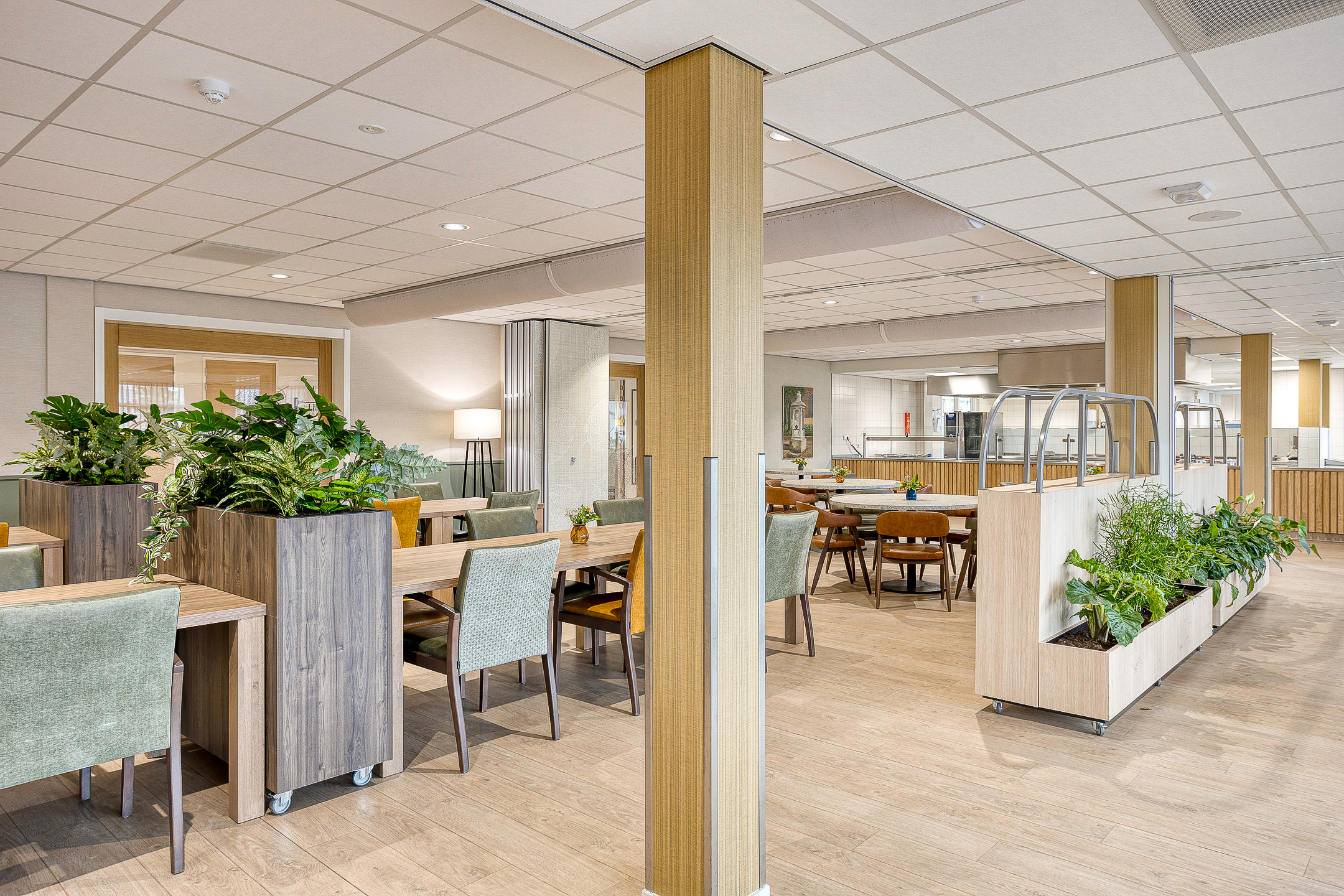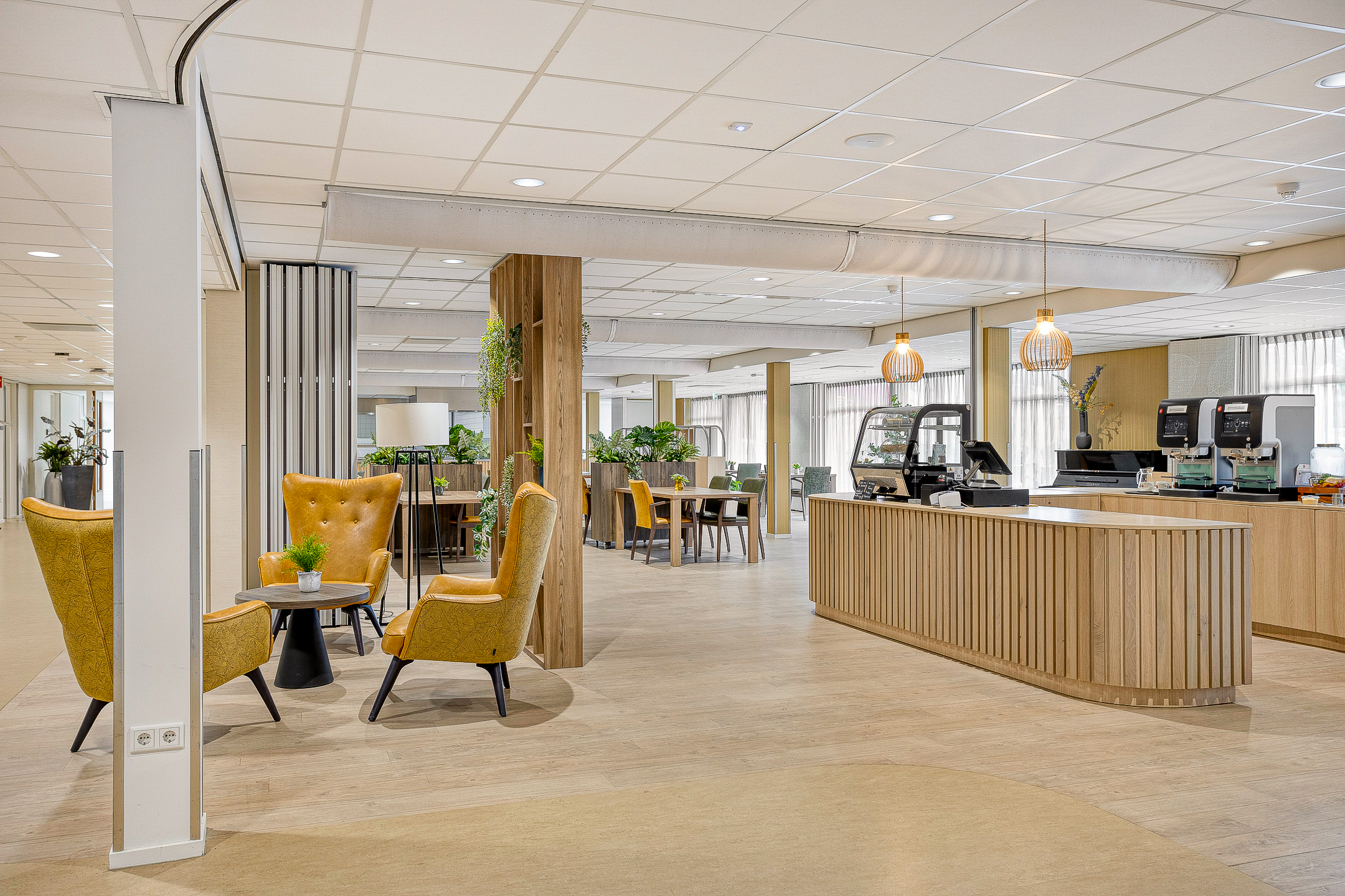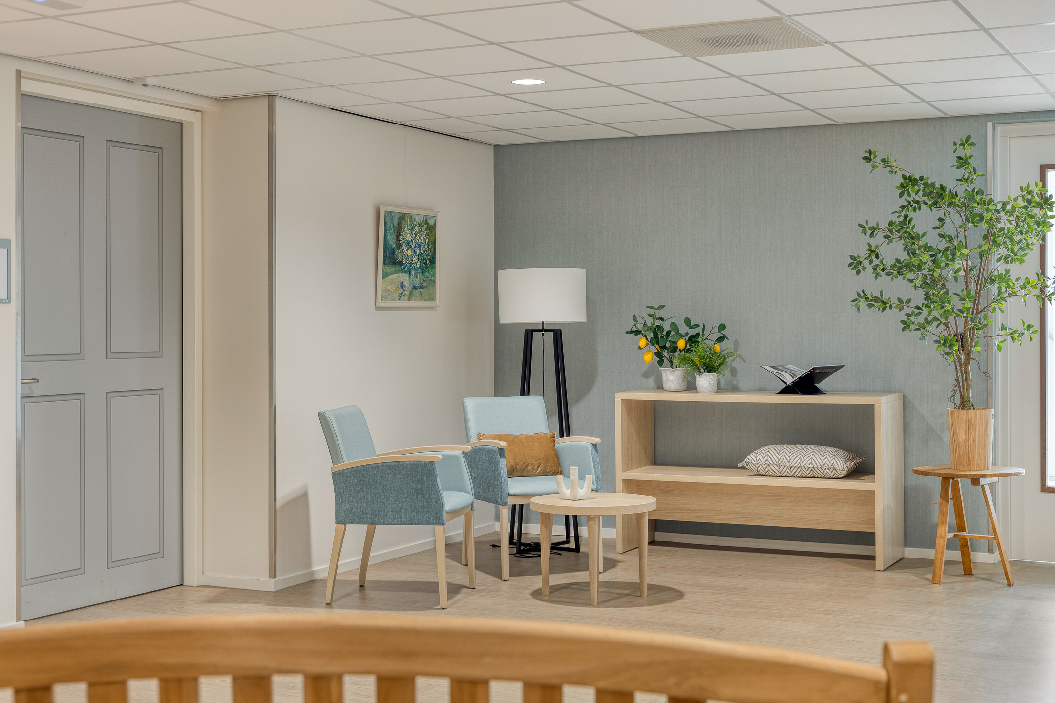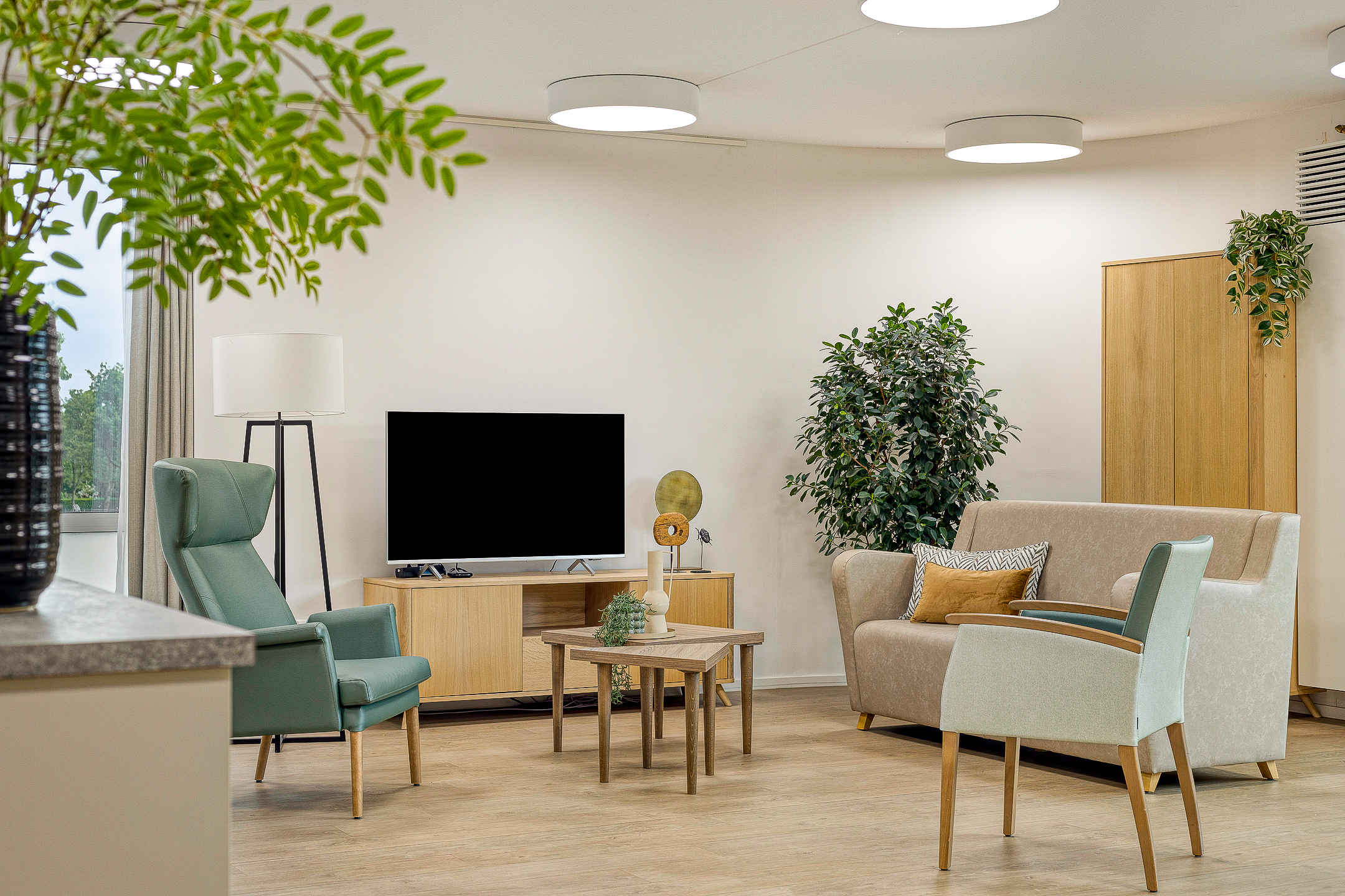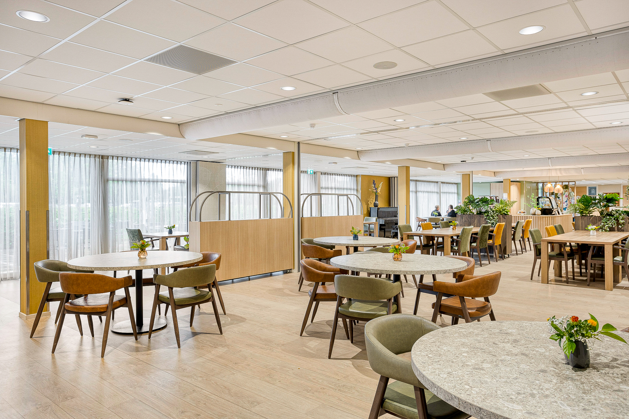 Wij hebben het complete meubilair geleverd voor de verschillende ruimtes in het gebouw, van de gezamenlijke woonkamers en het restaurant tot de ontmoetingsplekken en kantoorruimtes. Daarnaast hebben we maatwerk gerealiseerd, waaronder de bar in het restaurant. Dit maatwerk is speciaal ontworpen om zowel praktisch als uitnodigend te zijn, en vormt een centraal ontmoetingspunt voor bewoners, bezoekers en medewerkers.