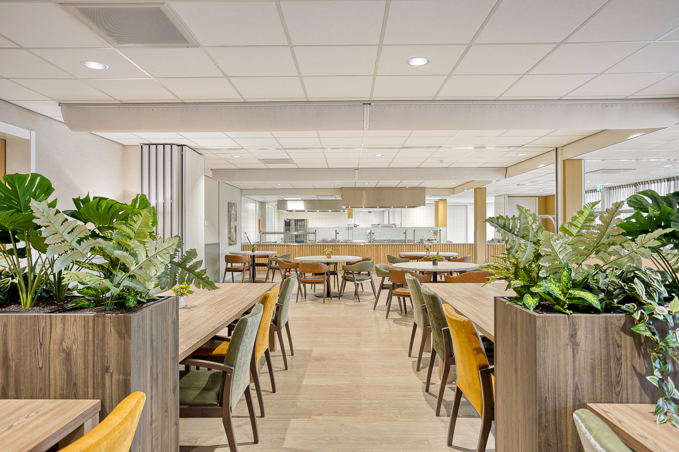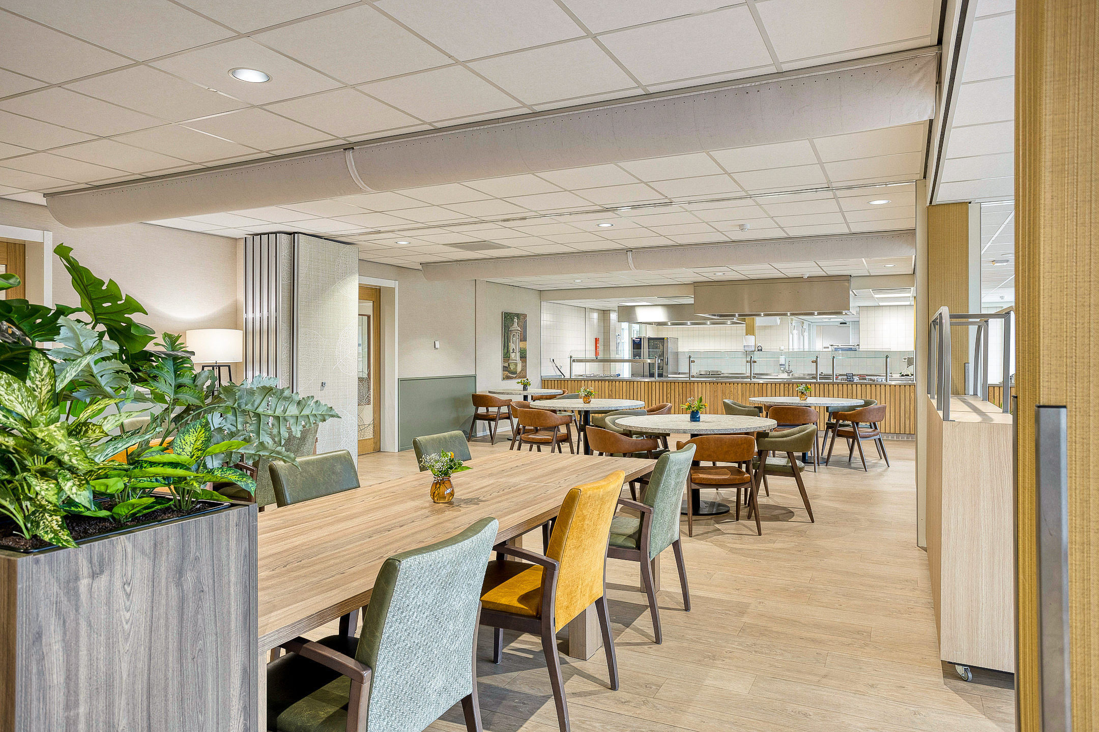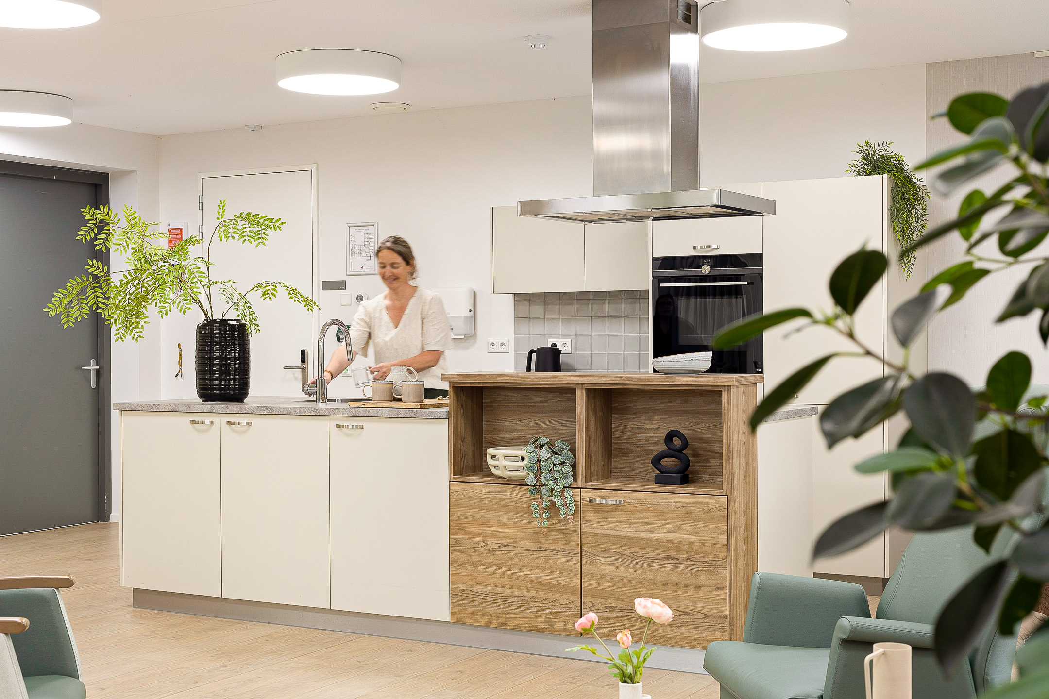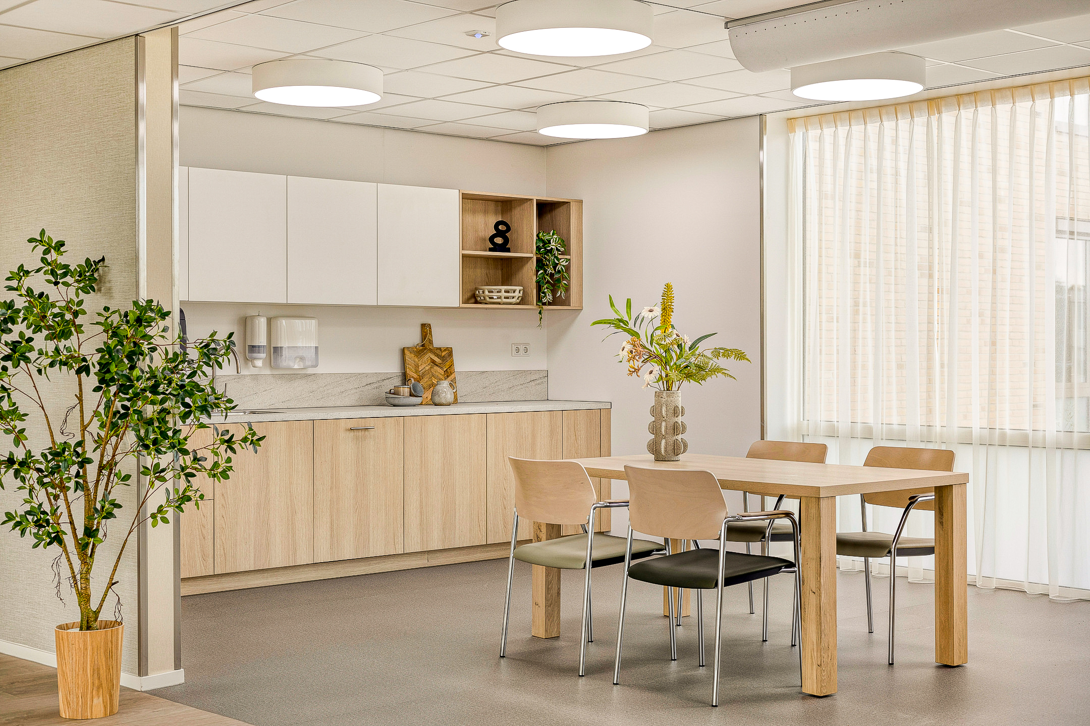 Wij hebben het complete meubilair geleverd voor de verschillende ruimtes in het gebouw, van de gezamenlijke woonkamers en het restaurant tot de ontmoetingsplekken en kantoorruimtes. Daarnaast hebben we maatwerk gerealiseerd, waaronder de bar in het restaurant. Dit maatwerk is speciaal ontworpen om zowel praktisch als uitnodigend te zijn, en vormt een centraal ontmoetingspunt voor bewoners, bezoekers en medewerkers.