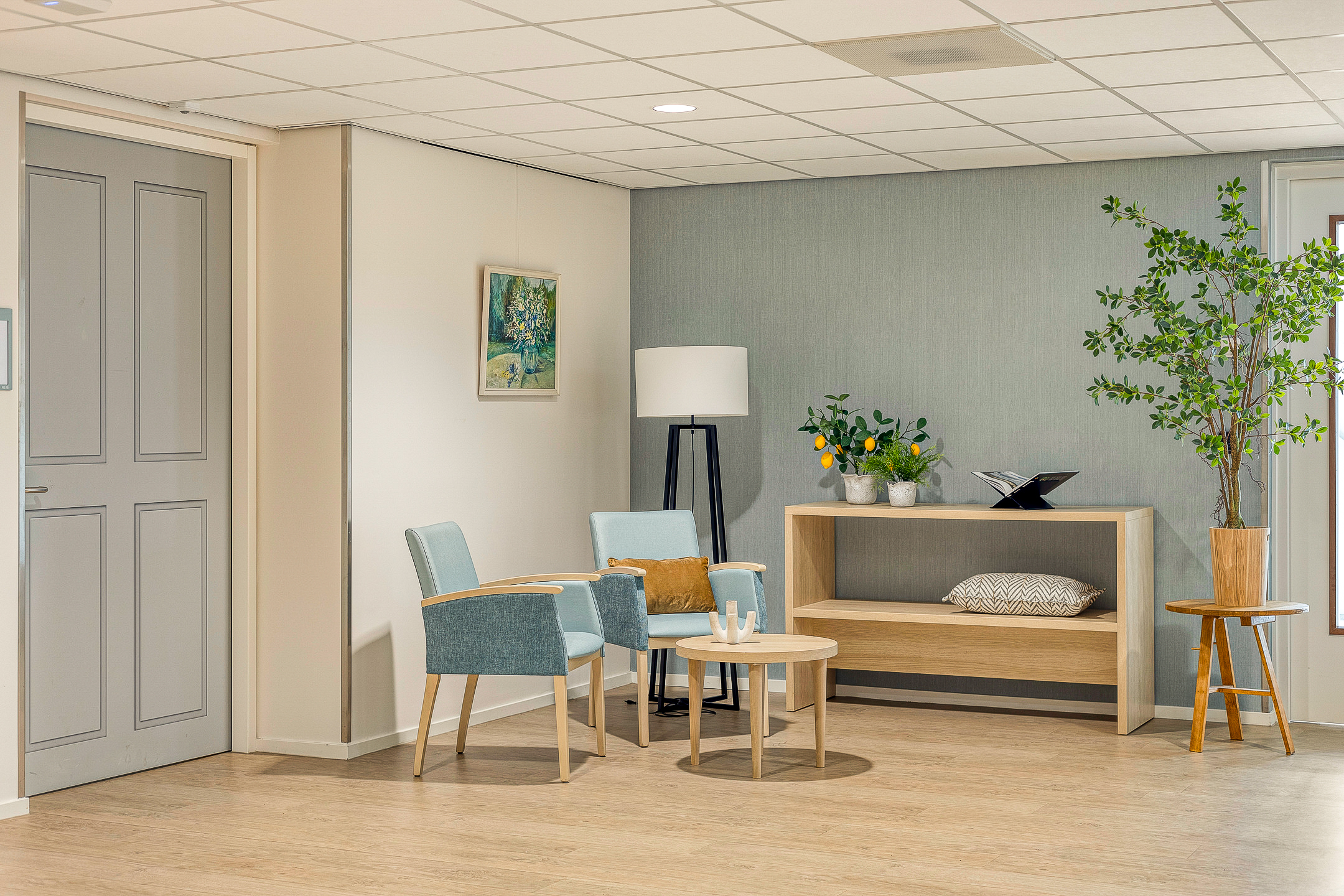 Voor het nieuwe woon-zorgcomplex Het Wooldhuis in Heino kregen wij de opdracht om bij te dragen aan de inrichting van het gebouw. Het doel was om een warme en gastvrije omgeving te creëren die aansluit bij de huiselijke sfeer van het zorgcentrum, maar ook bestand is tegen intensief dagelijks gebruik.